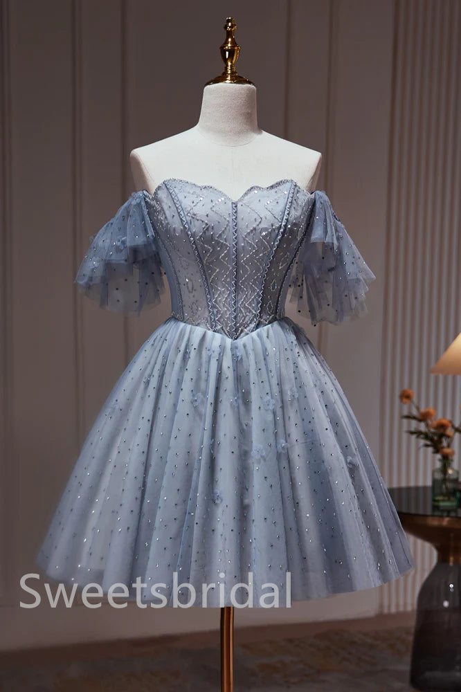 Elegant Off shoulder Sleeveless A-line Short Mini Homecoming Dress, BTW341