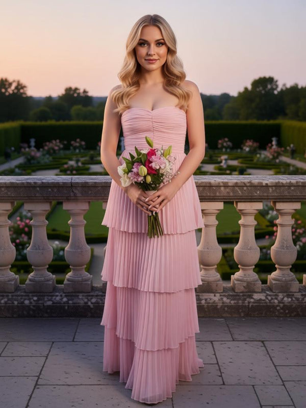 Cute Strapless Sleeveless Ruffles A-Line Floor Length Prom Party Dress,SWS2583