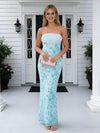 Sparkly Blue Strapless Sleeveless Sheath Long Prom Party Dress,SWS2621